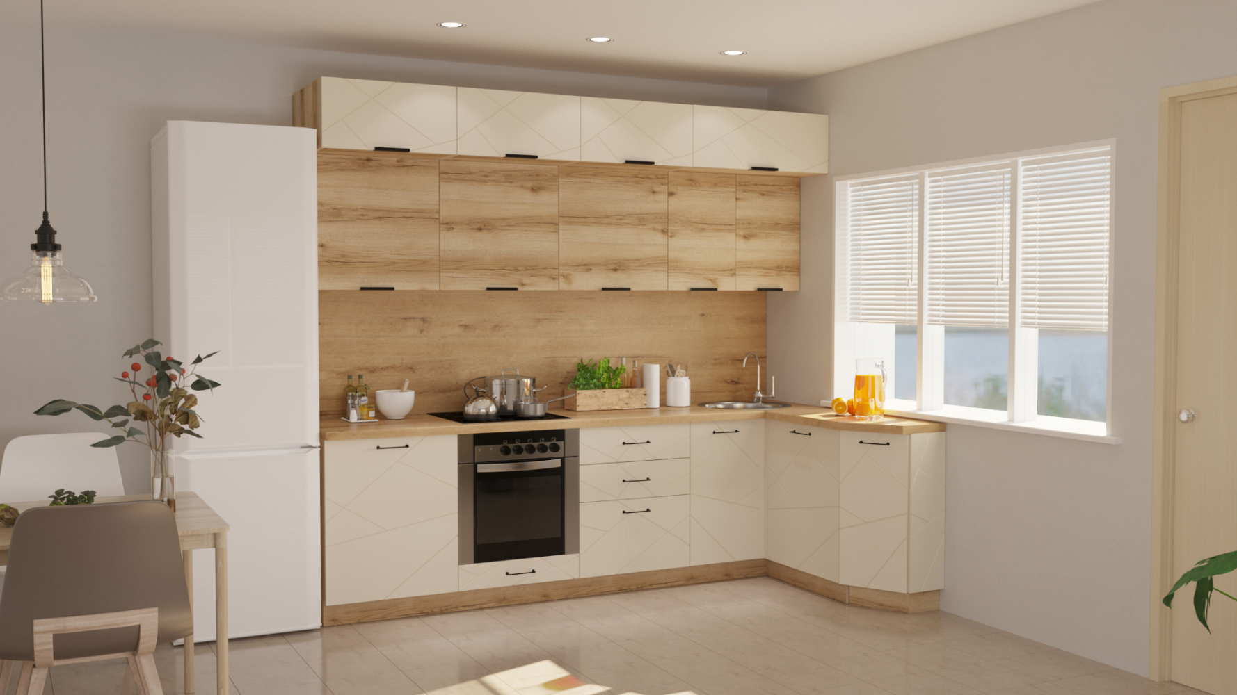 Создать проект в 3D конструкторе: https://maribel-mebel.ru/kitchen-designer/